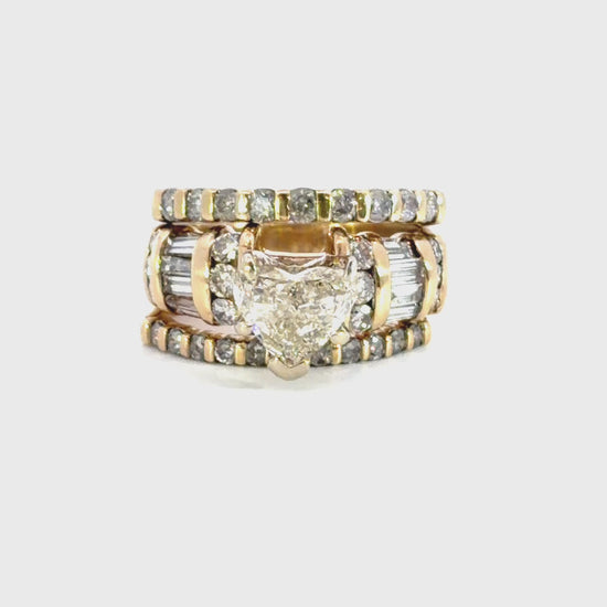 One 14KT yellow gold 3.68 cttw heart shaped cut diamond 3-piece wedding ring set: