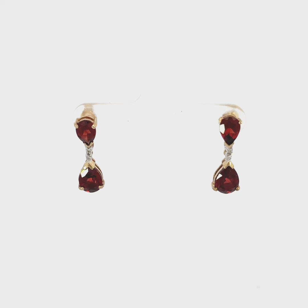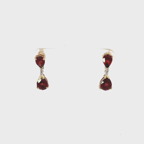 One pair 10K yellow gold almandine garnet & diamond dangle earrings containing.