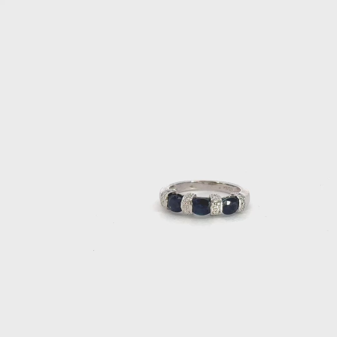 One 14Kt White gold diamond & natural blue sapphires band ring containing:
