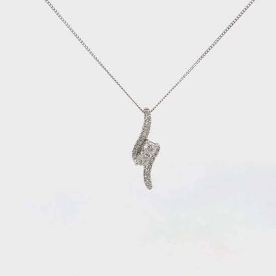 One 14Kt white gold 0.61 cttw round brilliant cut diamond bypass style pendent necklace: