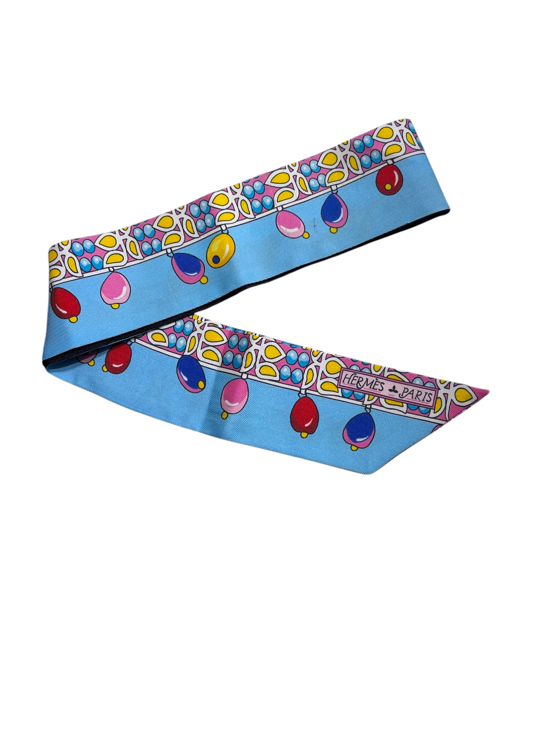 Blue Colorful Hermes Twilly Scarf With Balloons
