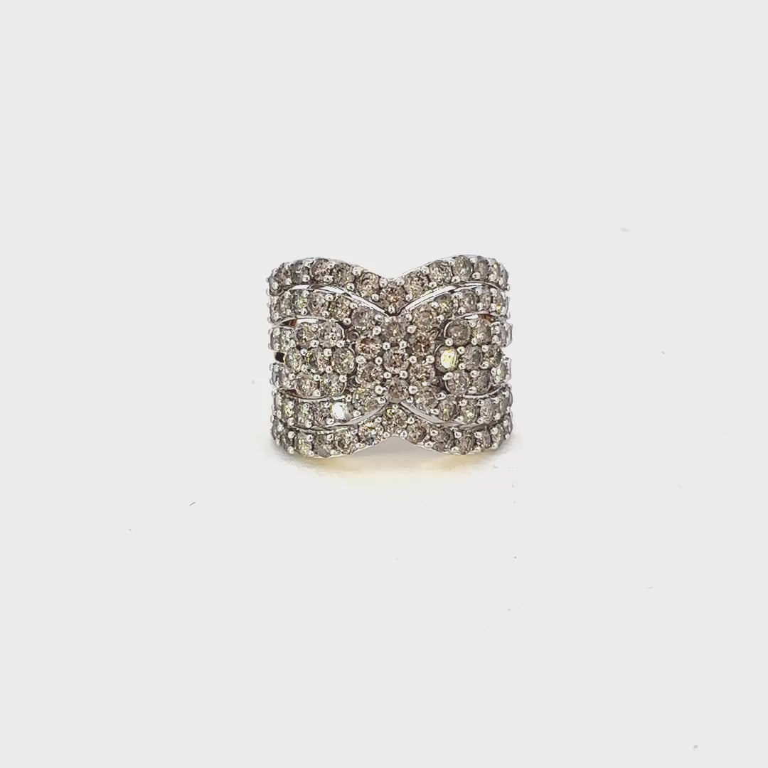 One 10K yellow gold 3.03 cttw. round cut champagne diamond cluster wide band statement ring.