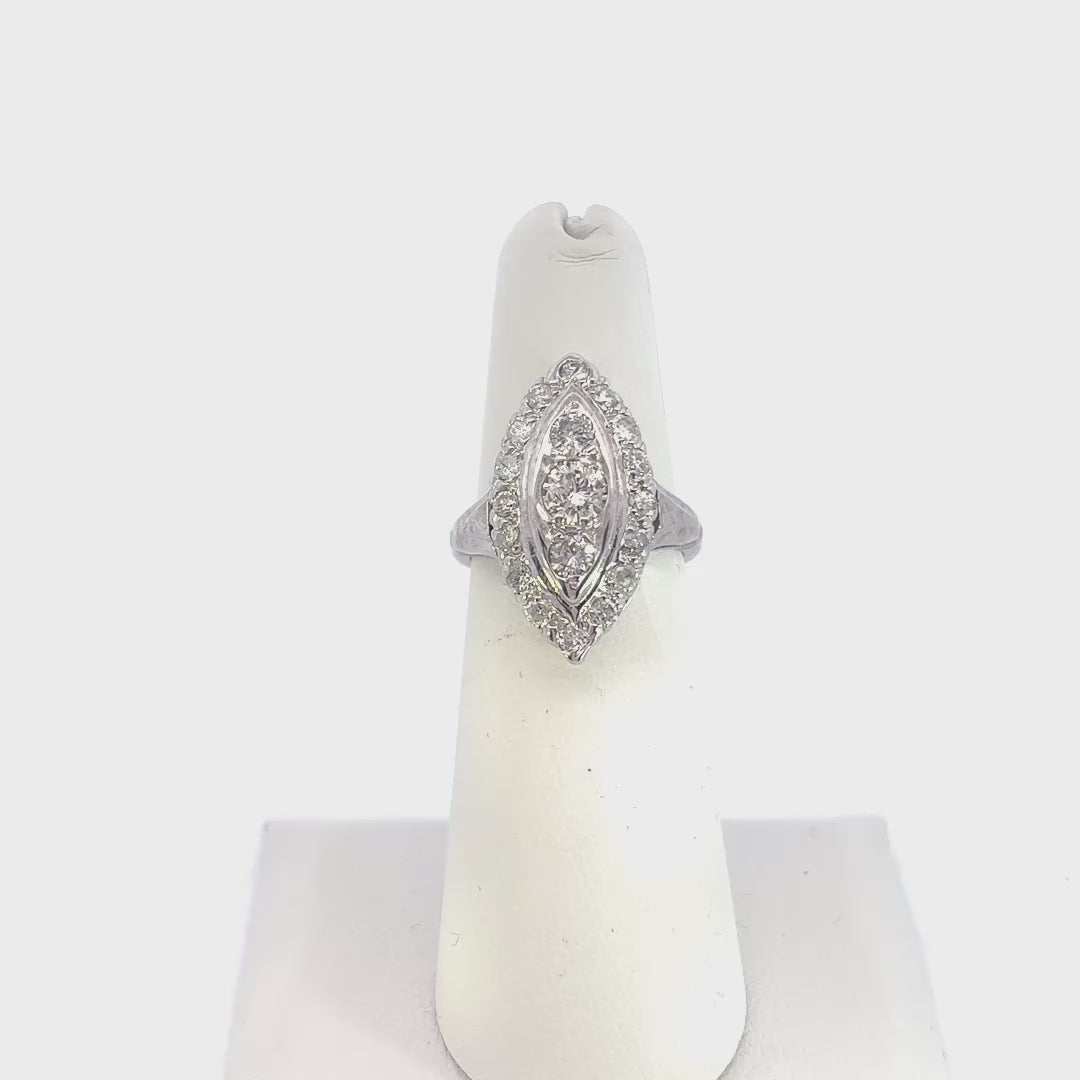 One 14Kt white golf 0.93 cttw round brilliant cut diamonds navette ring: