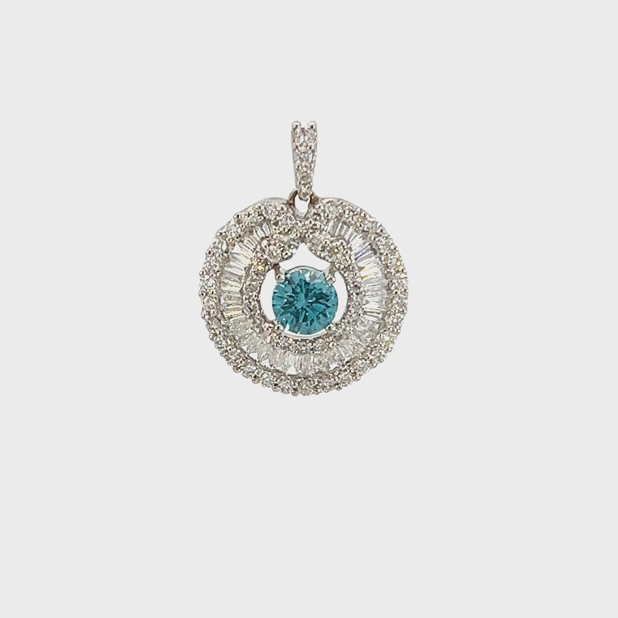 18 Karat white Gold 1.35 cttw. Fancy Greenish Blue and White Diamond Circle Pendant