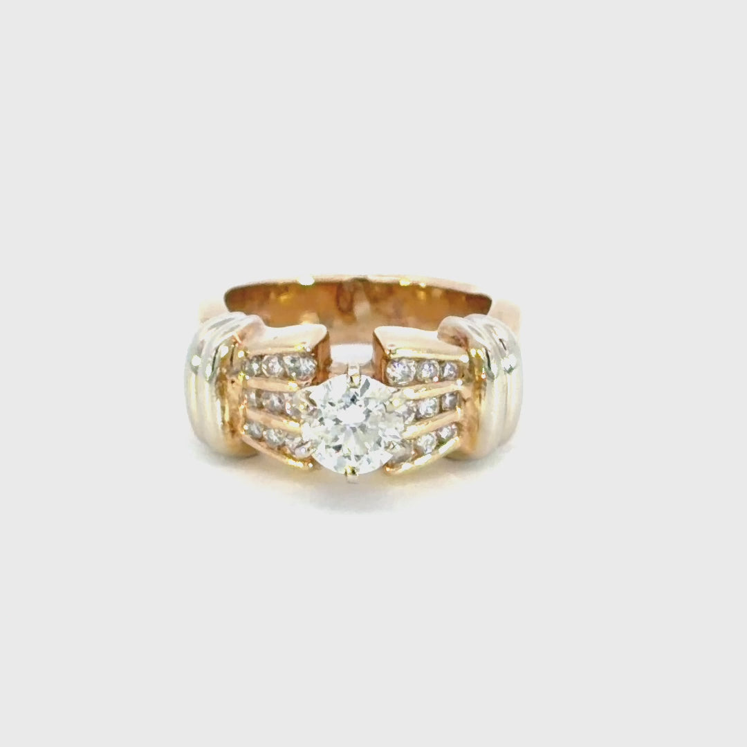One 14KT yellow gold 1.13 CTTW cathedral set round brilliant cut diamond wedding ring