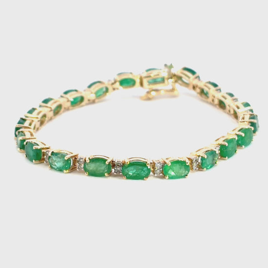One 14KT Yellow Gold Diamond & Natural Oval Cut Emerald Link Style Bracelet Containing: