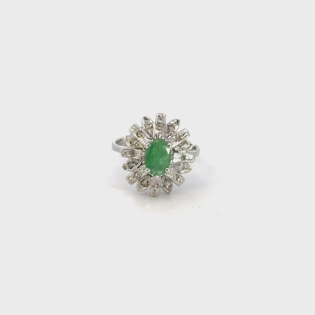 One 18KT white gold diamond & natural emerald halo style ring containing: