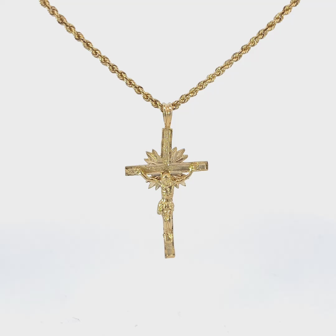 14 Karat Yellow Gold Cross Necklace on 14 Karat Rope Chain