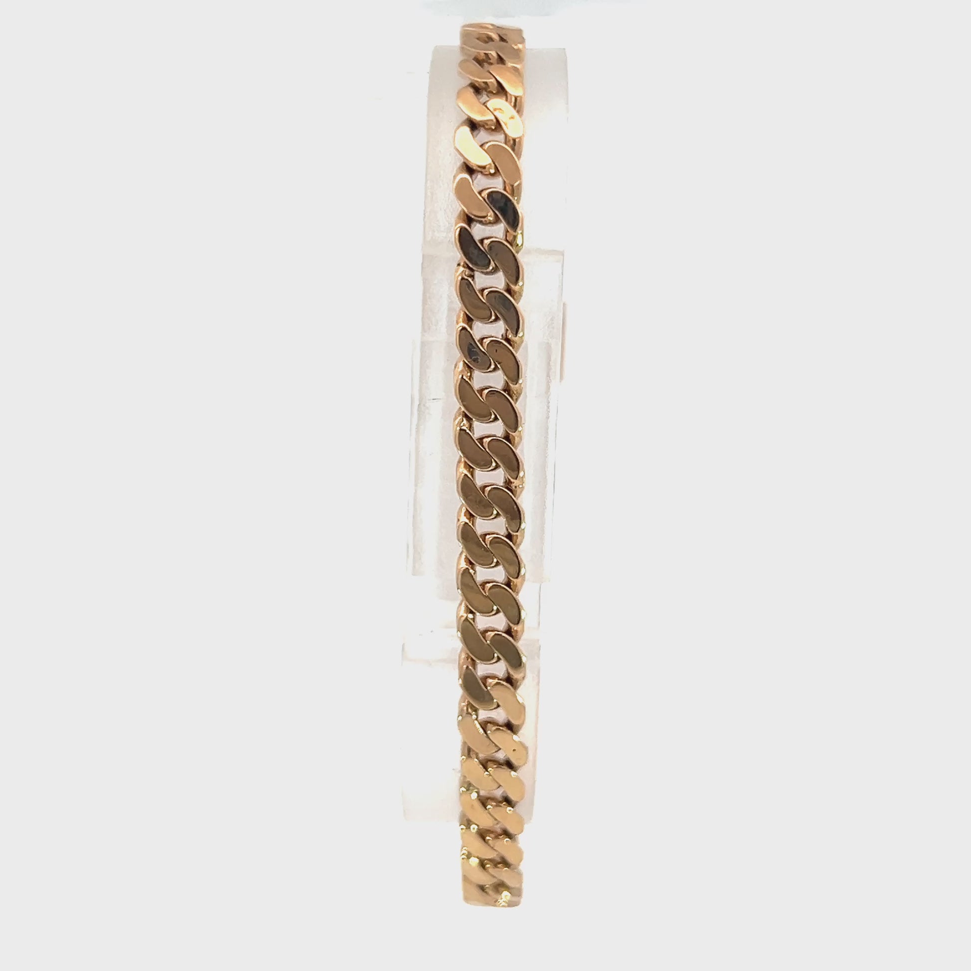 18 Karat solid gold Cuban link bracelet with lever clasp closure and attached safety chain