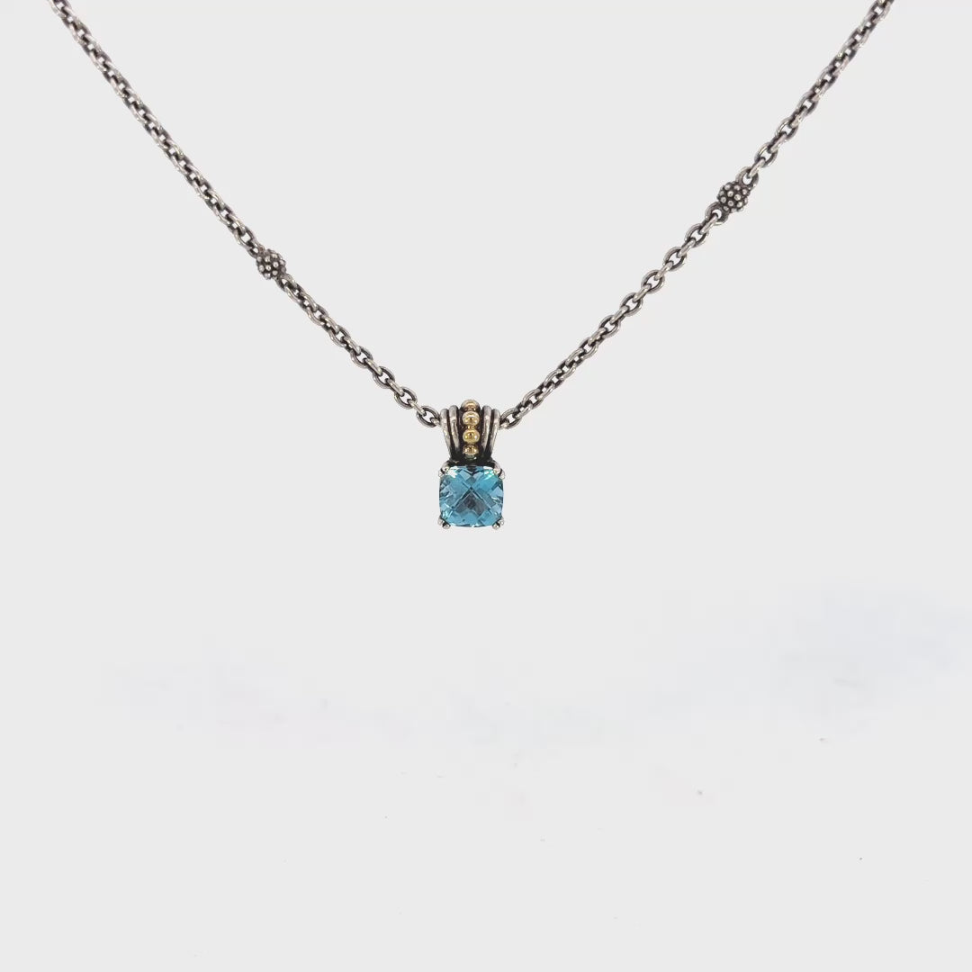 One 925 sterling silver authentic Lagos blue topaz pendent on 18 in beaded station necklace containing: