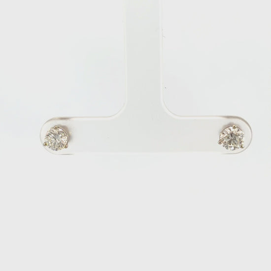 One pair of 14KT white gold 0.81 cttw martini set diamond stud earrings with treaded post containing: