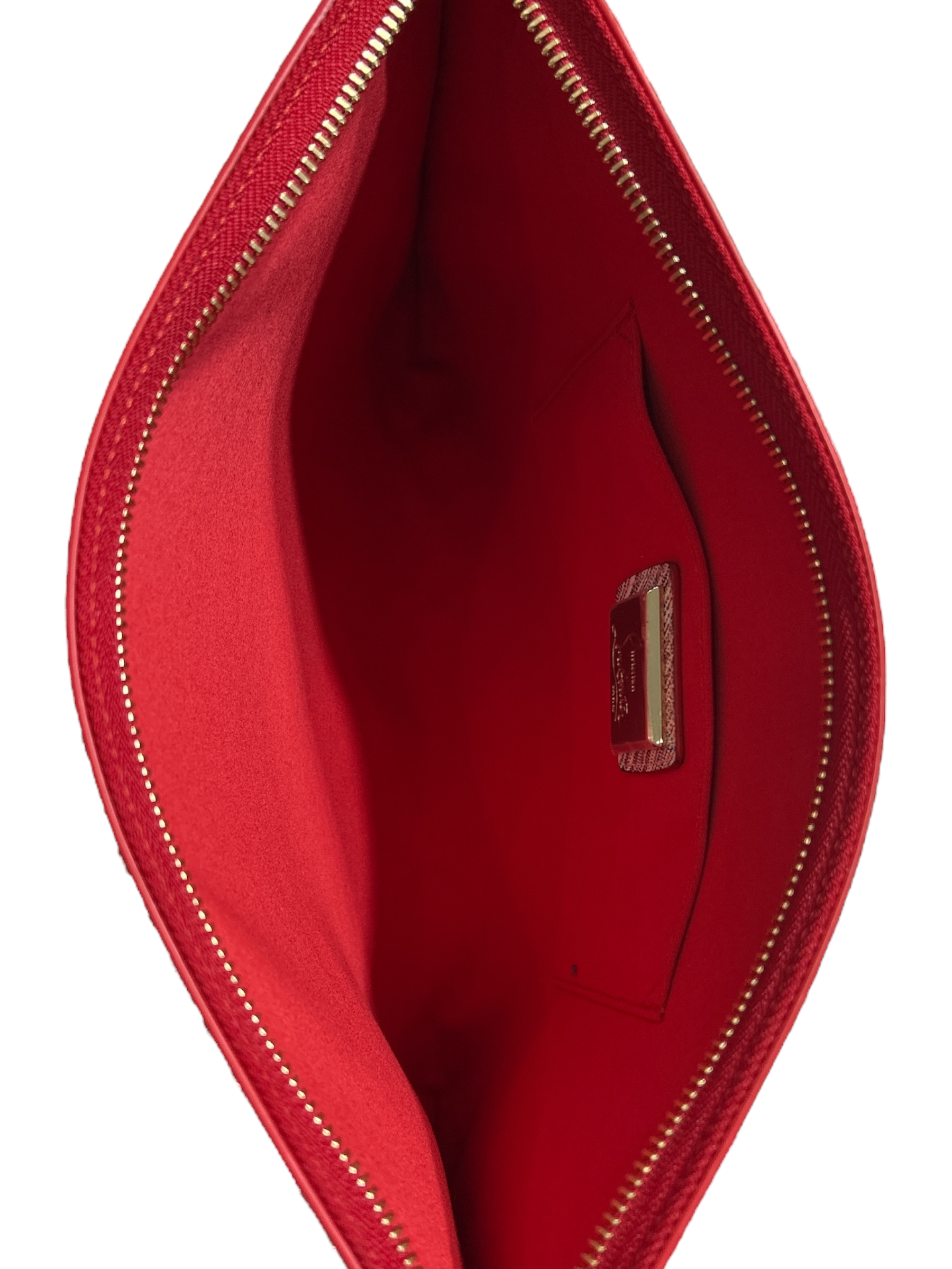 Christian Louboutin Metallic Design & Red Leather Loubiclutch with Silver and Gold toned Metal Hardware, Red Leather Interior