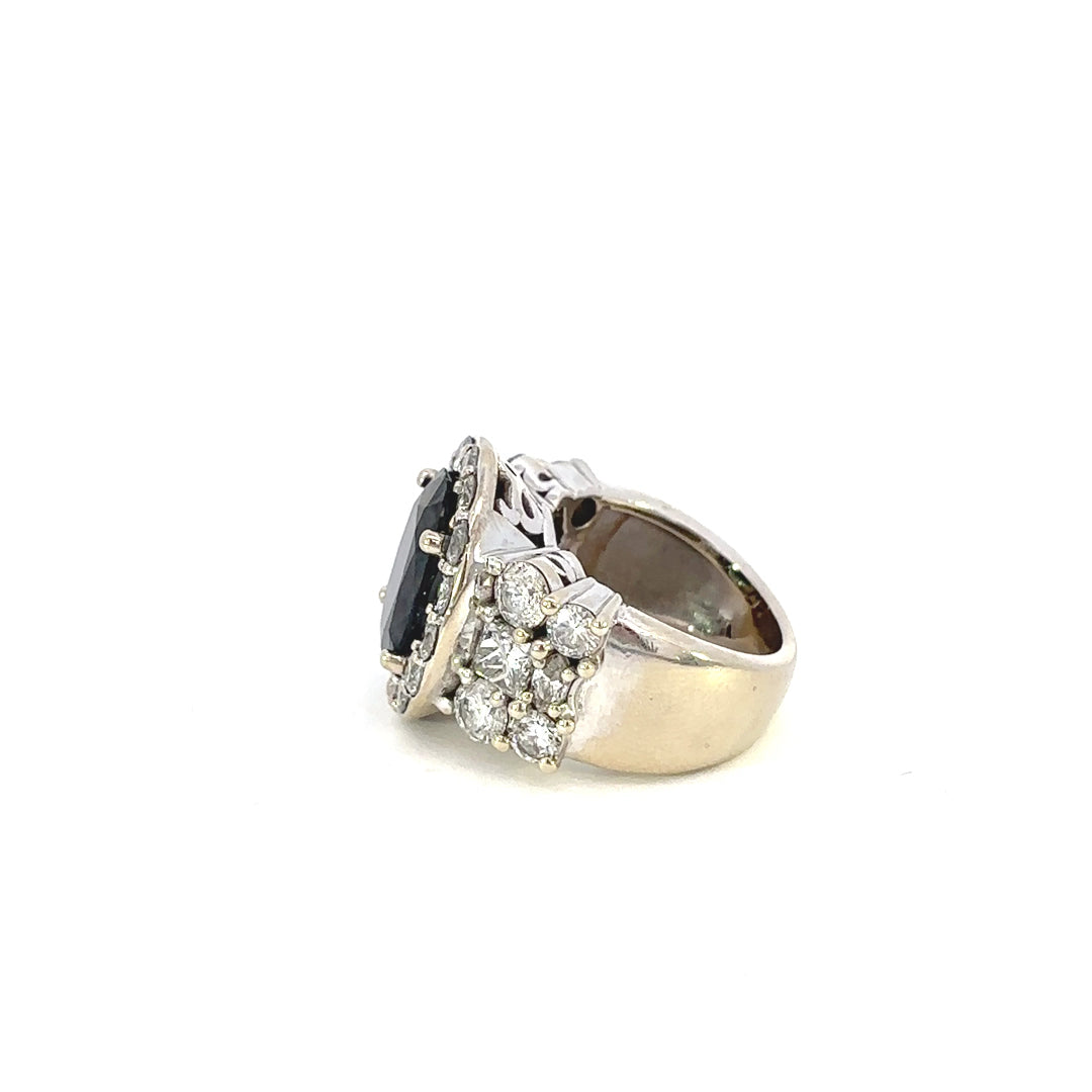 One 14K white gold 4.65 ct natural blue sapphire and 4.13 cttw. multi-cut diamond ring.