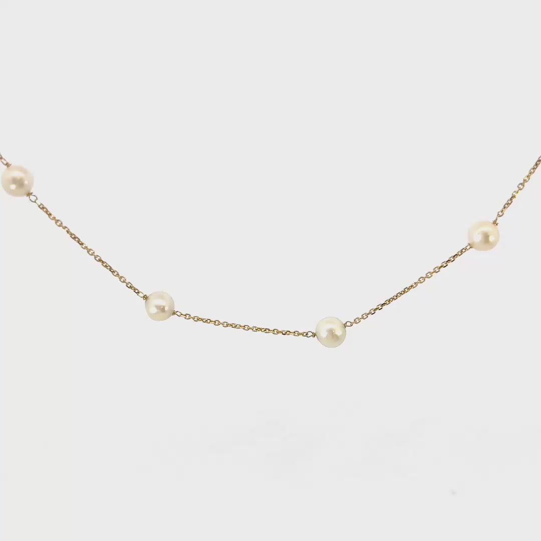 One 14kt yellow gold cultured Akoya pearl tin-cup style 17 in necklace containing:
