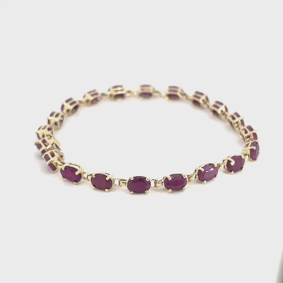 One 14KT Yellow Gold 11.40 cttw oval cut natural ruby tennist style bracelet