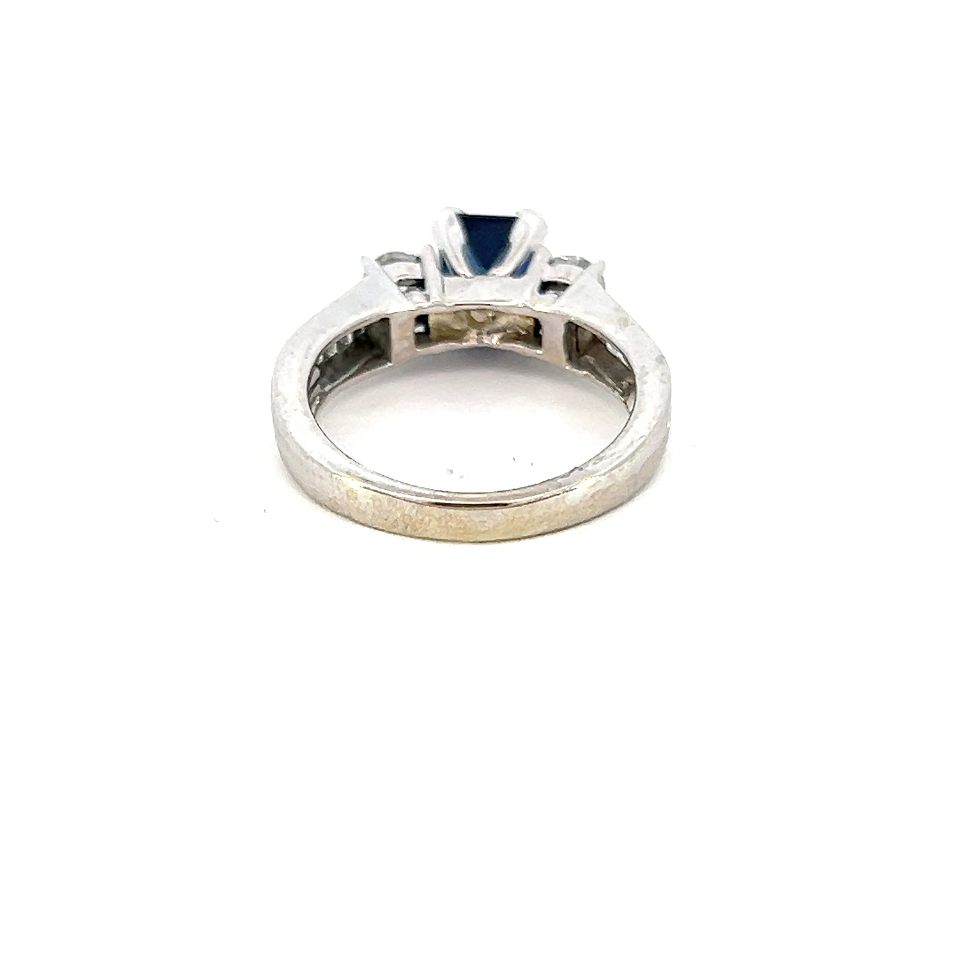 One 14Kt white gold 1.43 ct lab grown blue sapphire & 0.78 diamond ring containing
