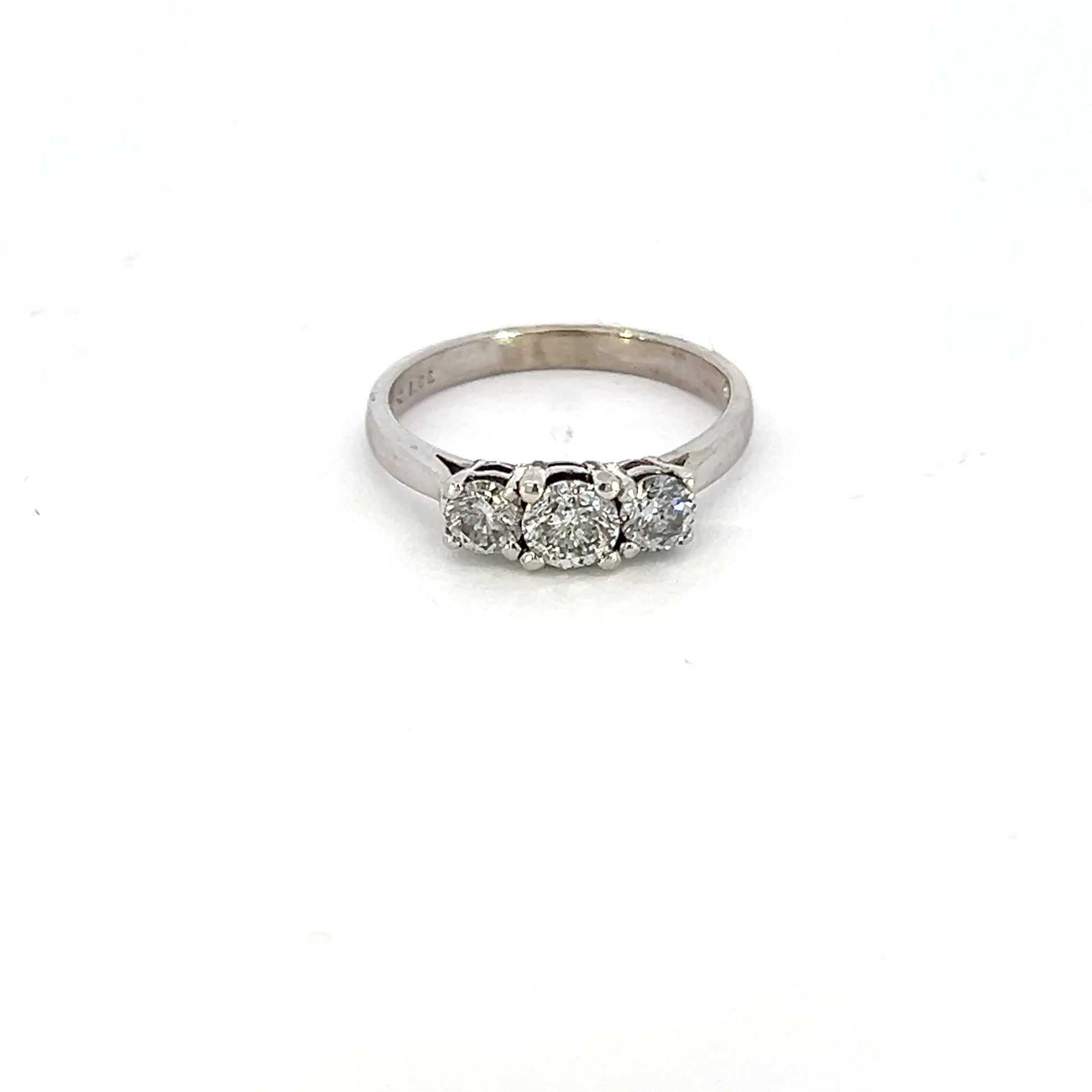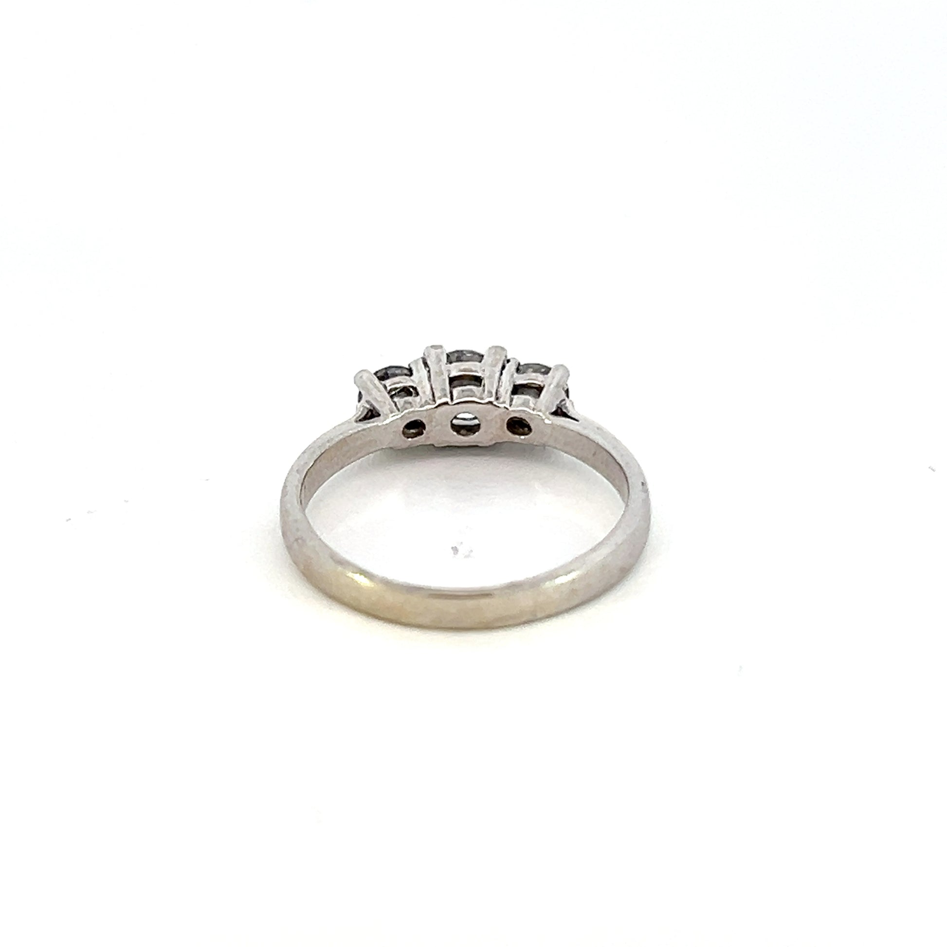 One 14Kt white gold 1.02 cttw three stone diamond band ring containing: