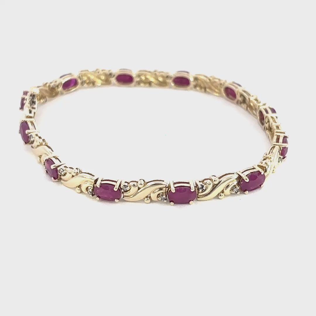 One 14KT yellow gold 6.48 cwt. natural ruby bracelet & 0.14 cwt. diamond wave link bracelet: