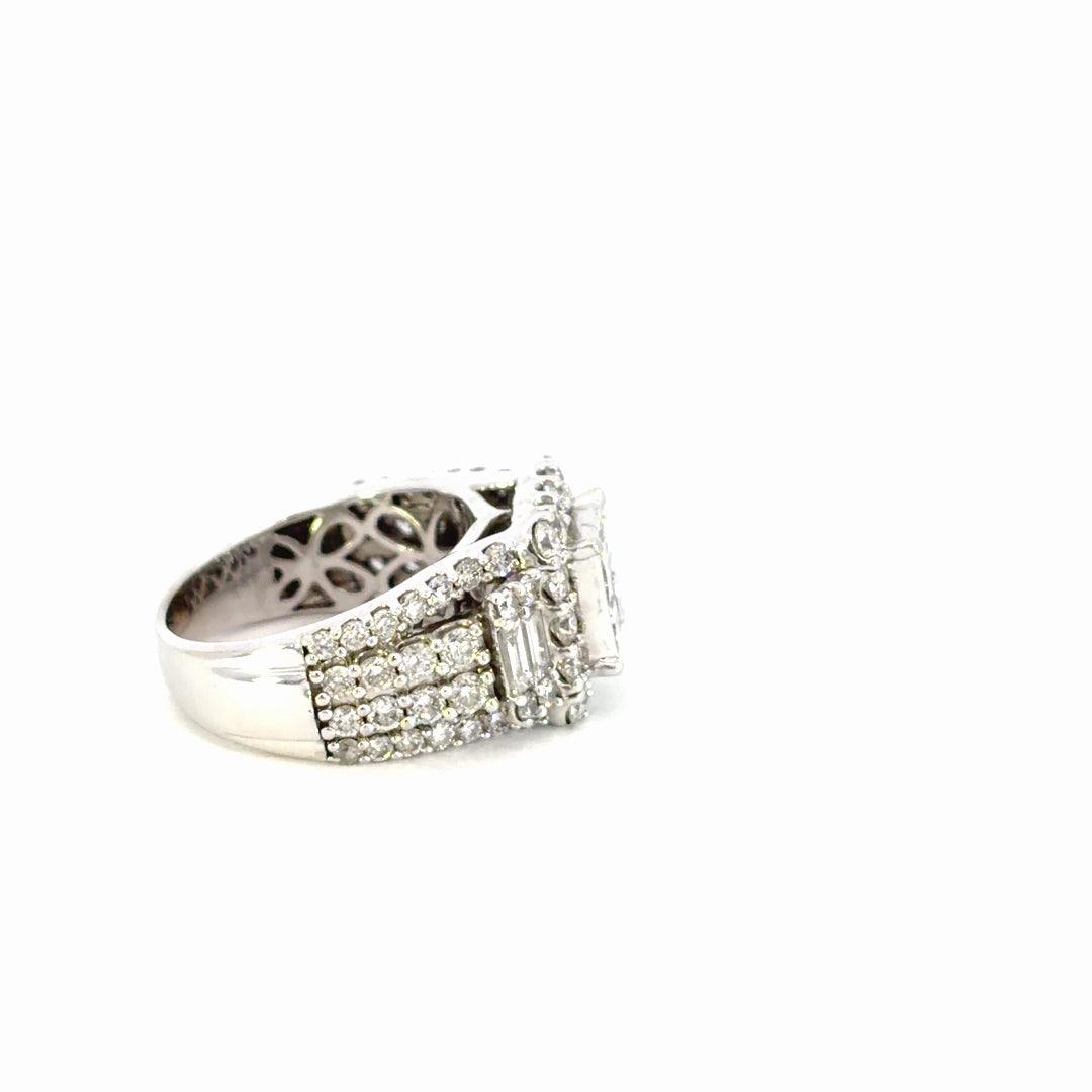 One 14kt white gold 3.41 cttw princess, round & baguette cut diamond halo style ring:
