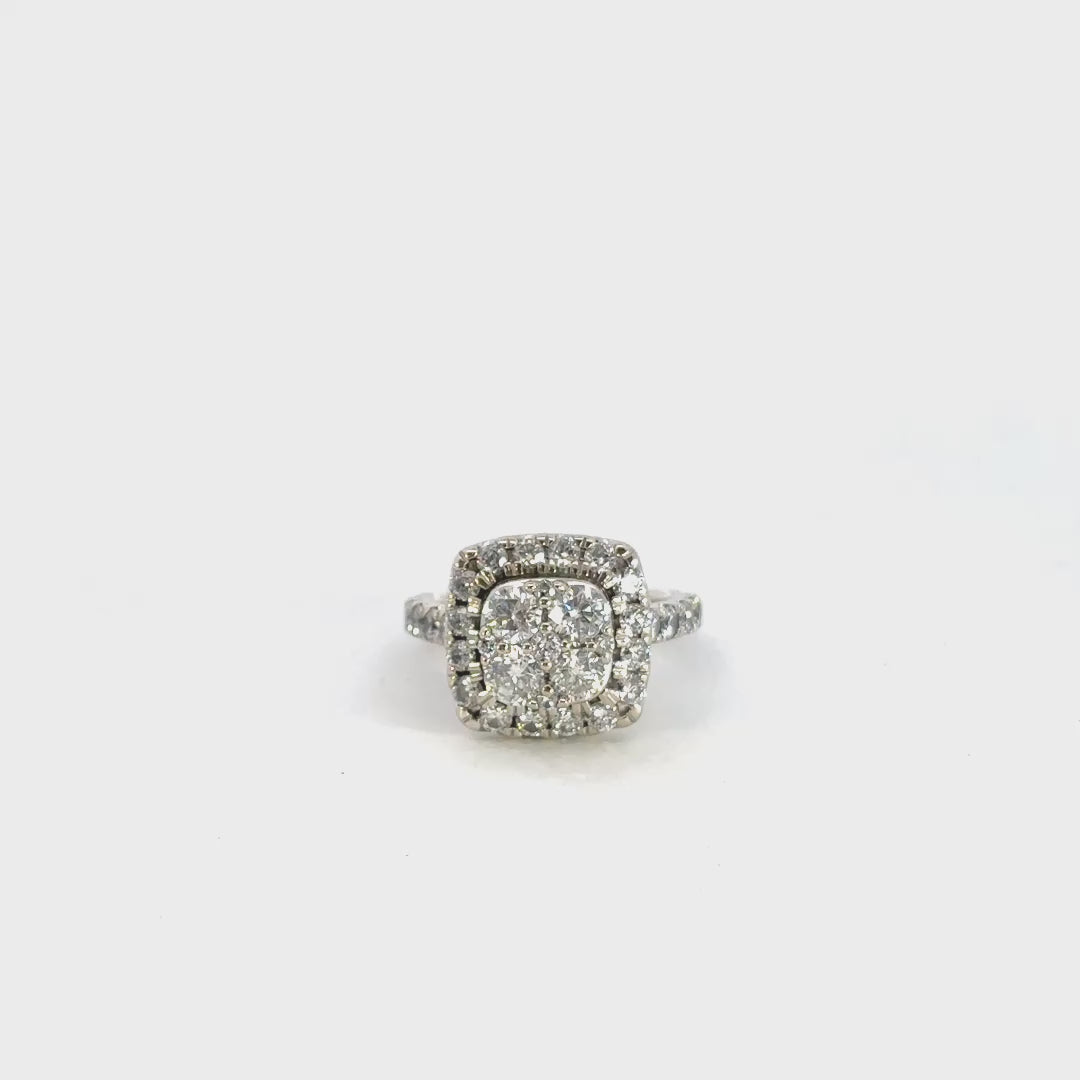 One 14KT white gold 2.20 CTW round brilliant cut diamond cluster halo engagement ring: